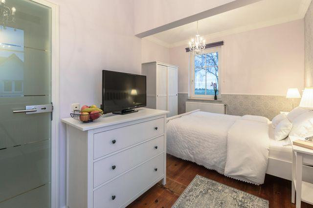 1 Schlafzimmer mit Doppelbett, Kleiderschrank und 2 Nachttischen