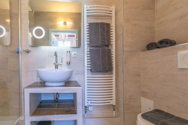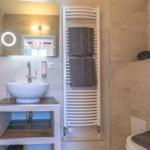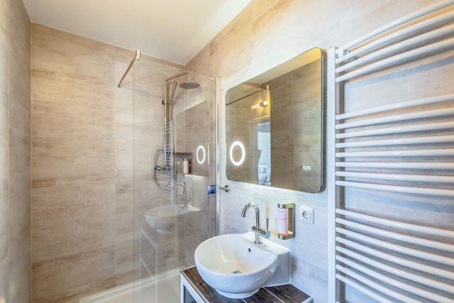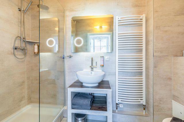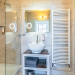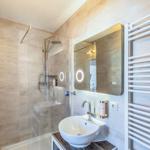 neues Duschbad mit Regendusche und beleuchteten Kosmetikspiegel